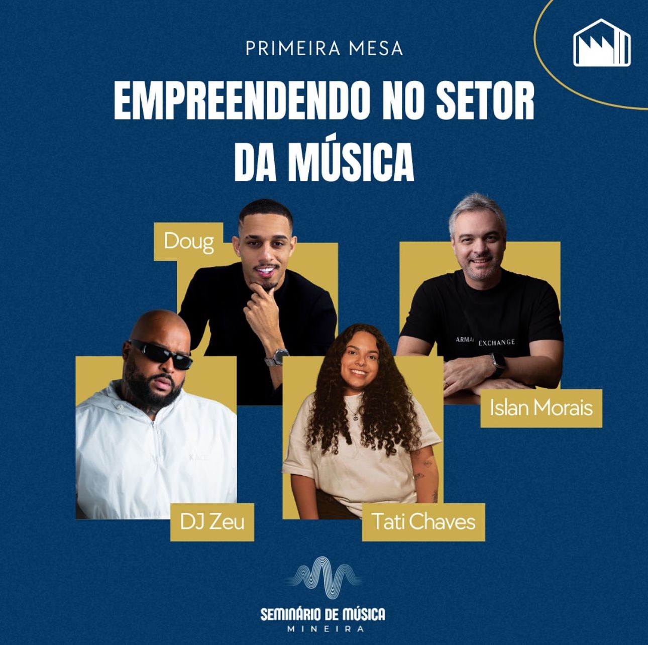 Seminário de Música Mineira 2025A 2ª edição do Seminário de Música Mineira aconteceu no dia 29 de julho, no Grande Teatro do Sesc Palladium, e reuniu grandes nomes do mercado para um dia de troca e construção coletiva sobre o presente e o futuro da nossa música. • Mesa de Artistas – contou com as participações de Akatu, Bruna Lipiani, MC Gabzin, Henrique Portugal (Skank), Sidoka debatendo sobre os desafios e caminhos da trajetória artística em diferentes gêneros musicais. • Mesa Empreendendo no Setor da Música – Contou com Henrique Douglas (Doug Hits), Islan Morais, DJ Zeu e Tatiana Chaves trazendo experiências práticas sobre como estruturar projetos e movimentar o mercado mineiro. • Mesa Políticas Públicas, Cultura e Economia Criativa – reuniu Eliane Parreiras e Eduardo Cruvinel, refletindo sobre incentivos, editais e o papel das instituições no fortalecimento da cena musical. O evento reafirmou o compromisso de dar voz aos artistas, produtores e profissionais que constroem diariamente a música mineira, ampliando conexões e oportunidades para a nova geração. Foi uma noite de encontros, aprendizado e muita inspiração para quem vive, pensa e transforma a música em Minas.